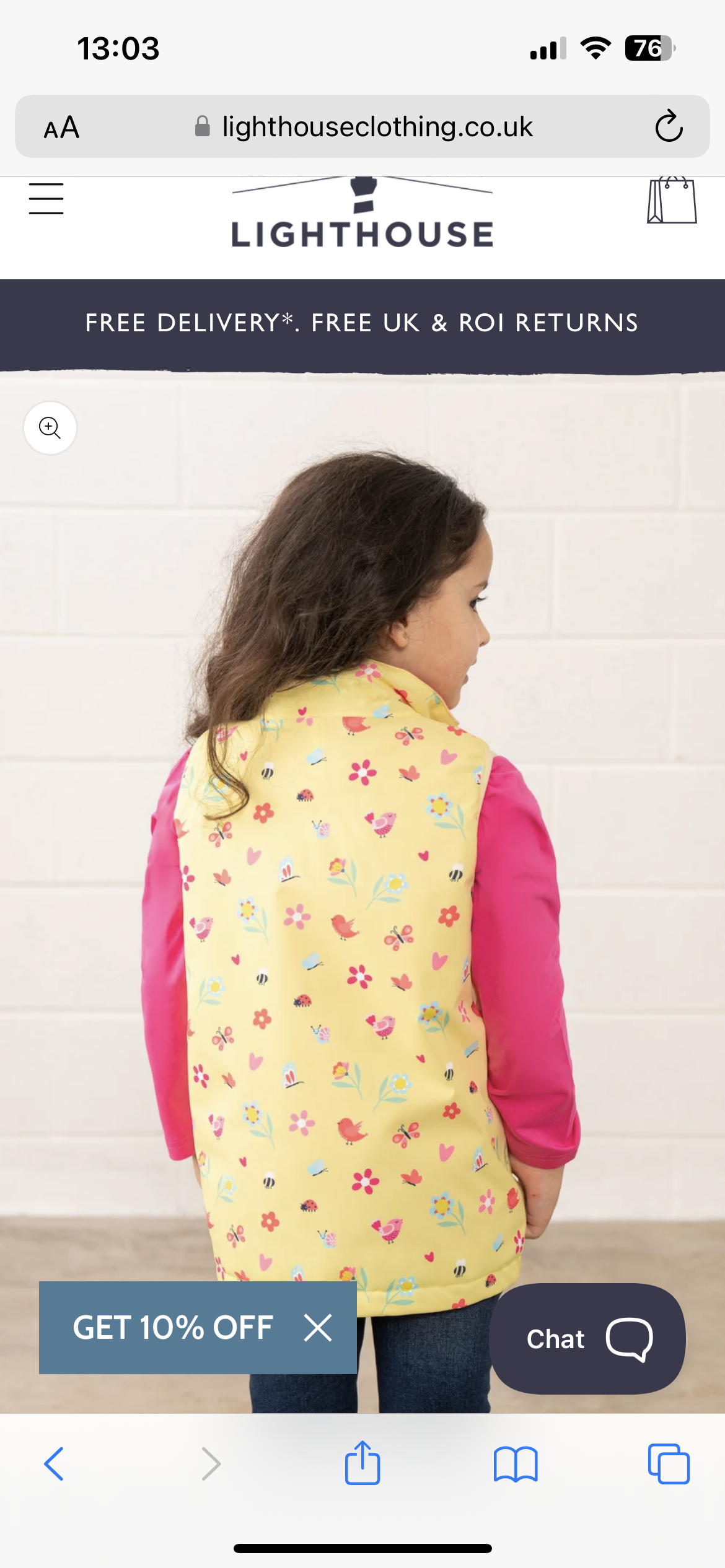 A waterproof gilet finished with a fun print.