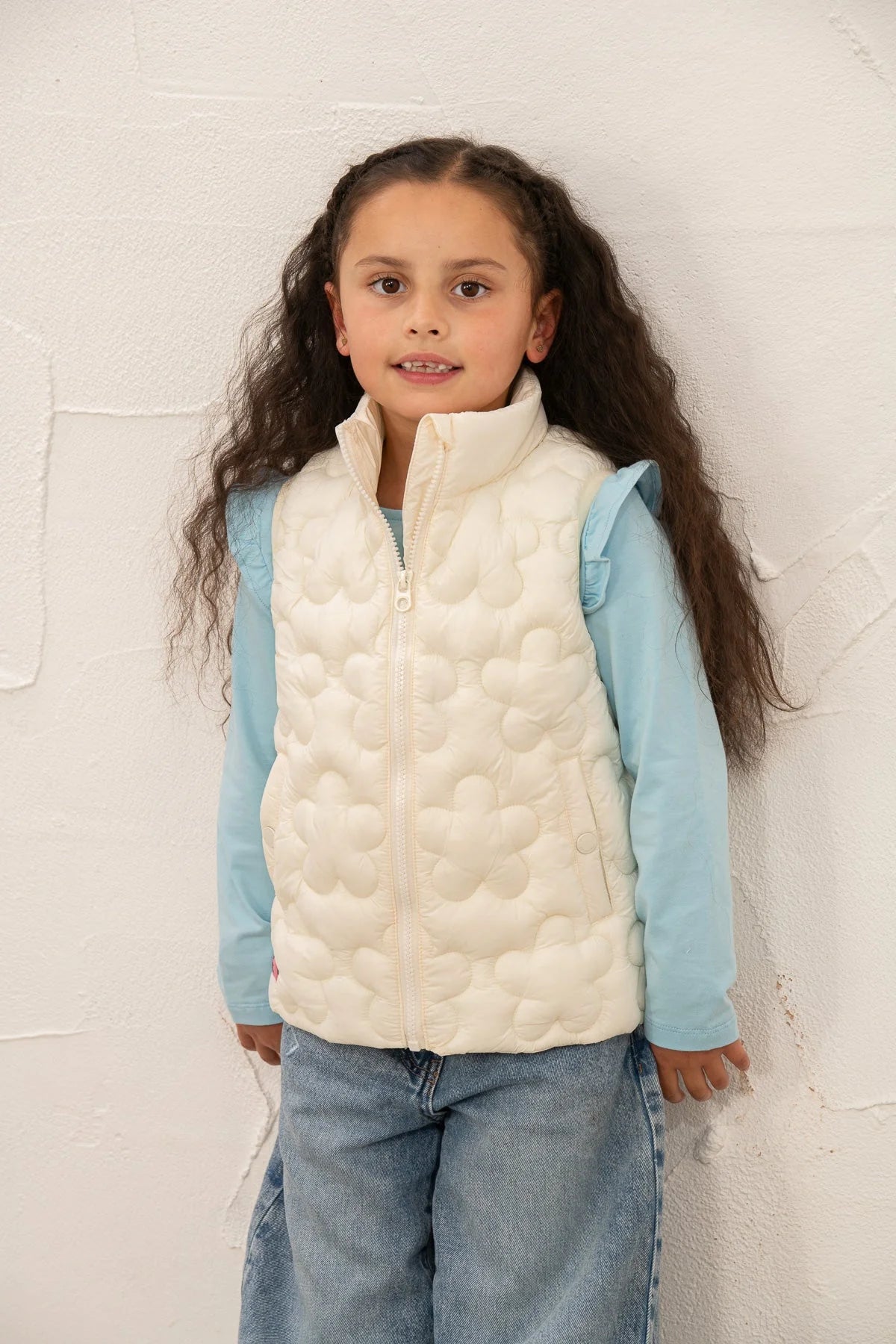 For days when a coat feels too much, this gilet is just right. Lightly padded with a stitched floral pattern, it adds warmth without bulk — ideal for layering over a jumper on the way out the door.