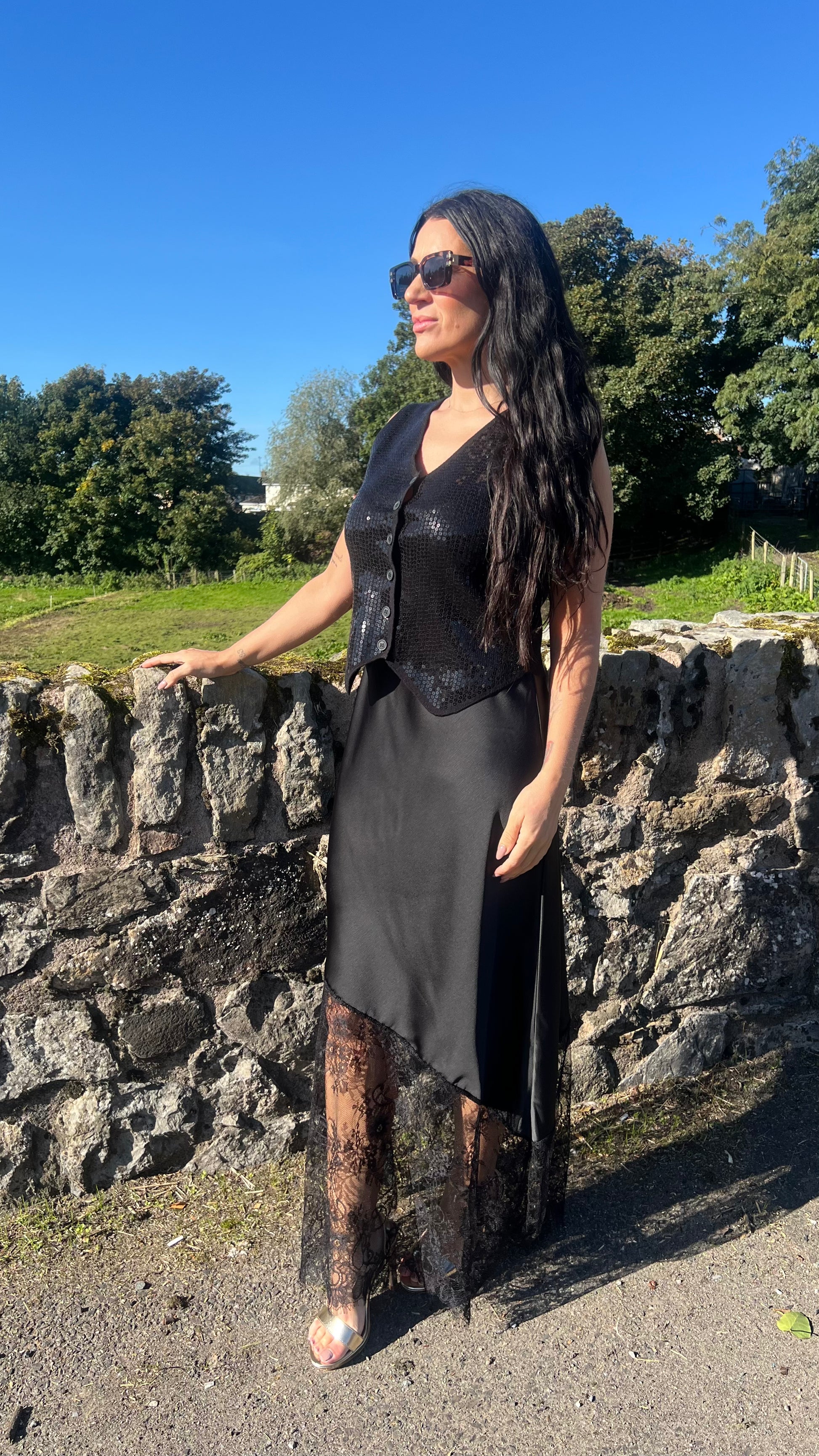 Elevate your wardrobe with this elegant black satin skirt, designed to effortlessly blend classic sophistication with modern allure. Crafted from smooth satin feel material, the skirt drapes beautifully over the body, creating a sleek and flattering silhouette.