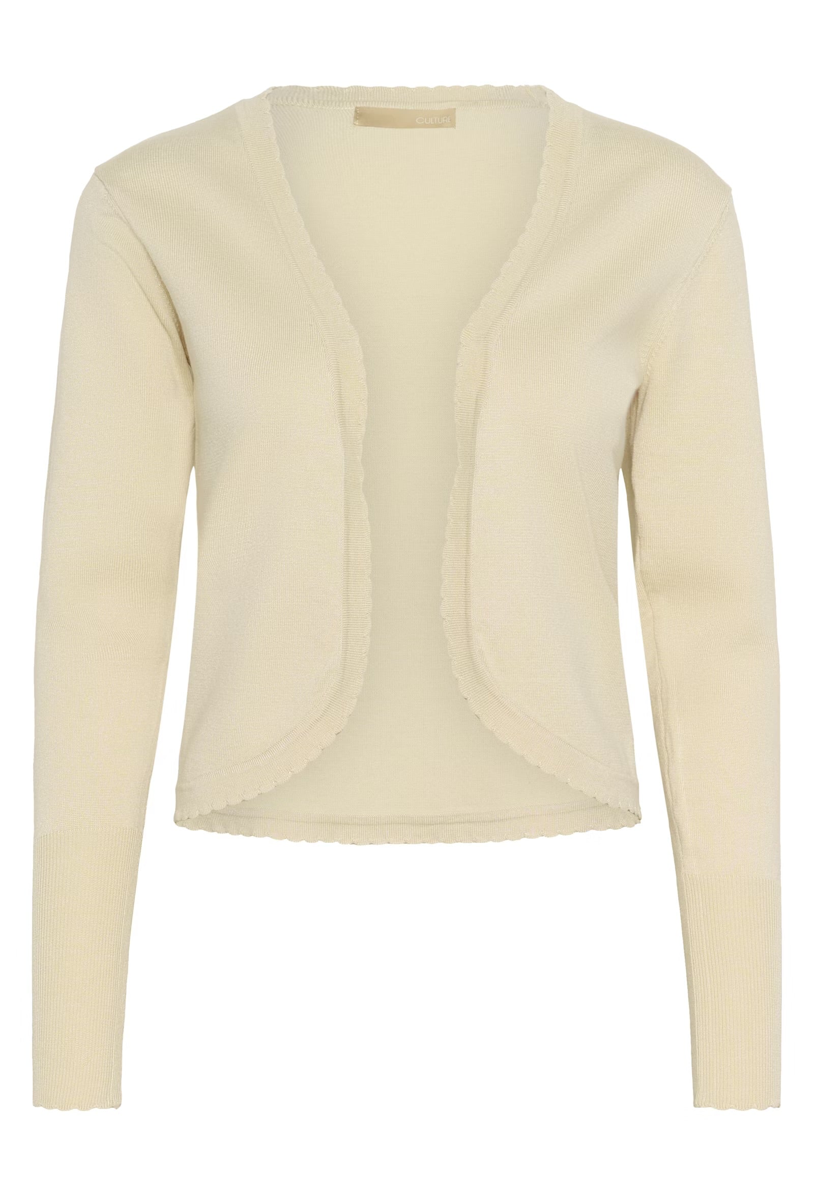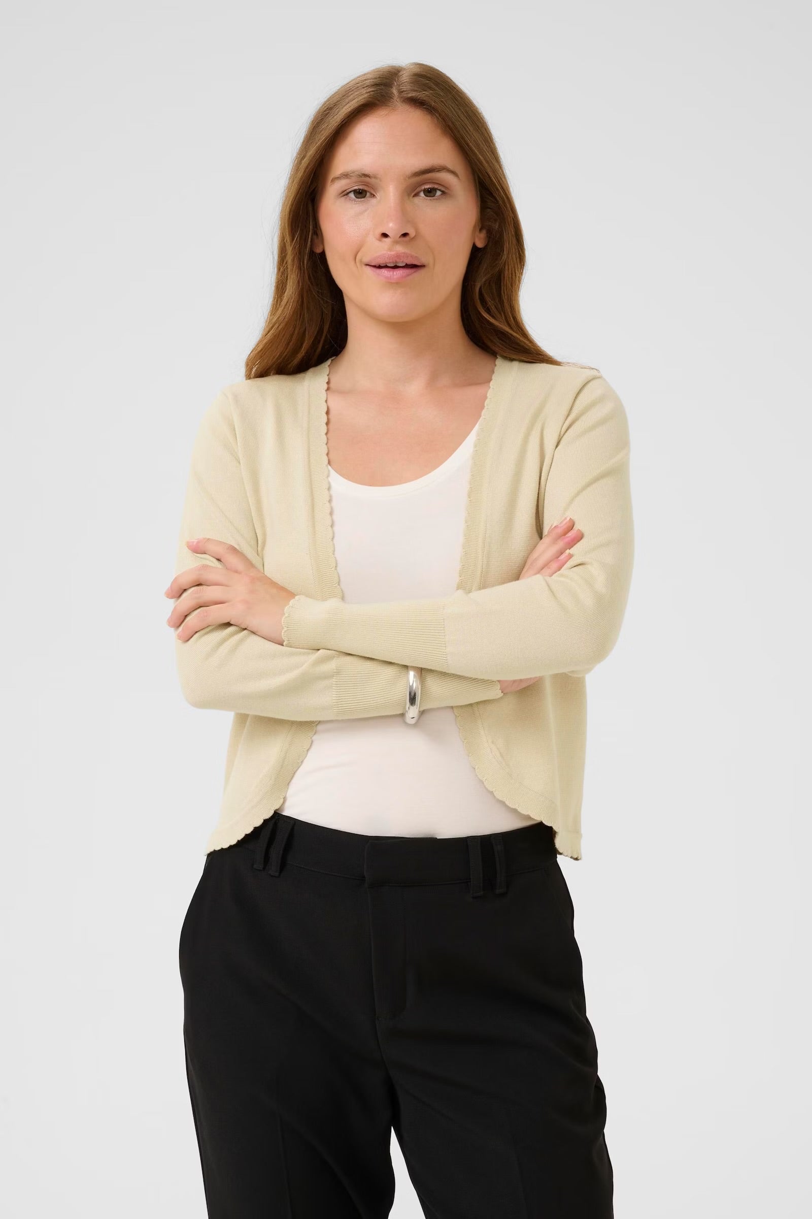 This women's cardigan offers a classic silhouette with an open front, delicate scalloped trims, and long sleeves. Its lightweight knit ensures comfortable layering, perfect for both work and casual occasions.