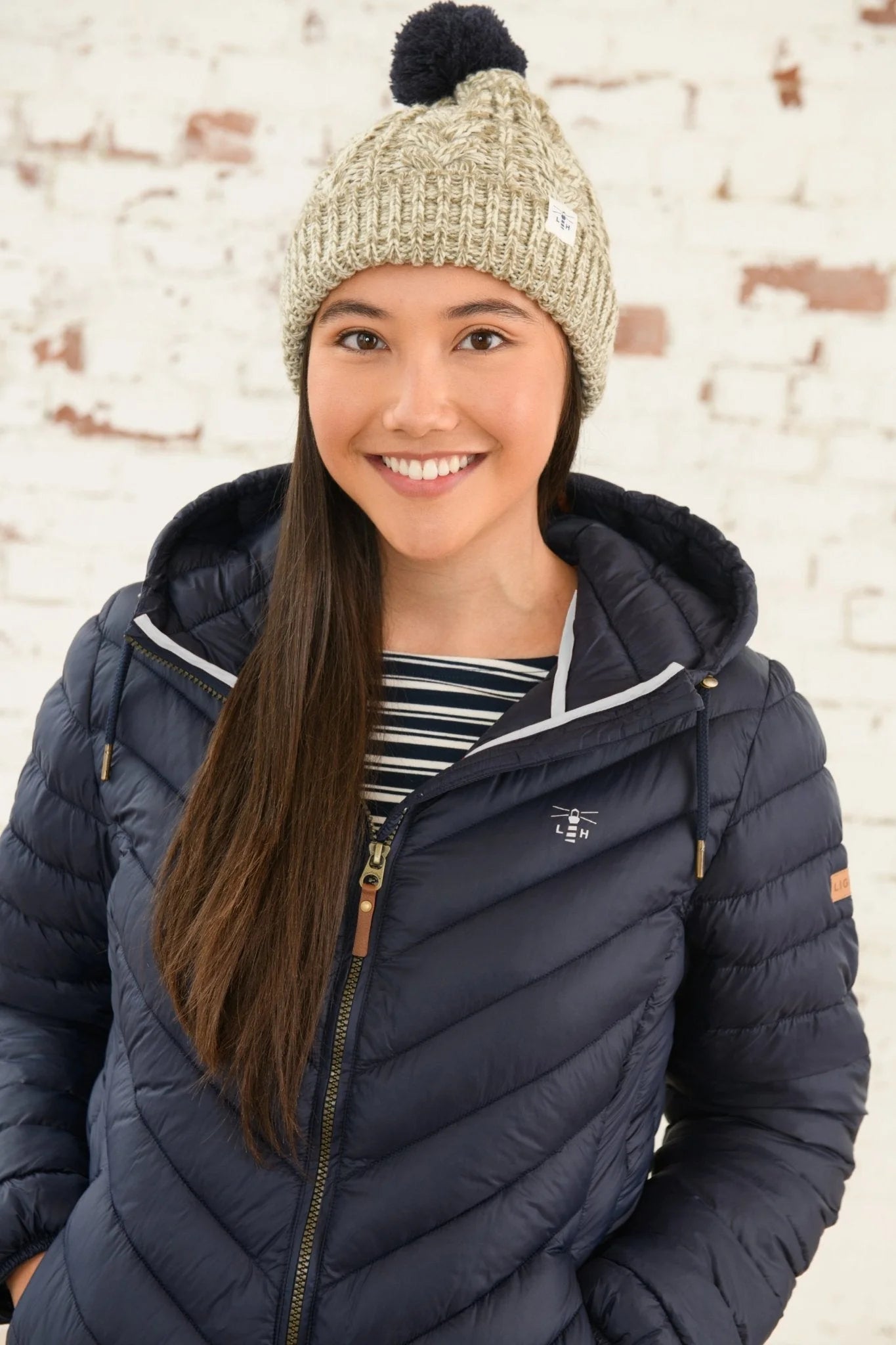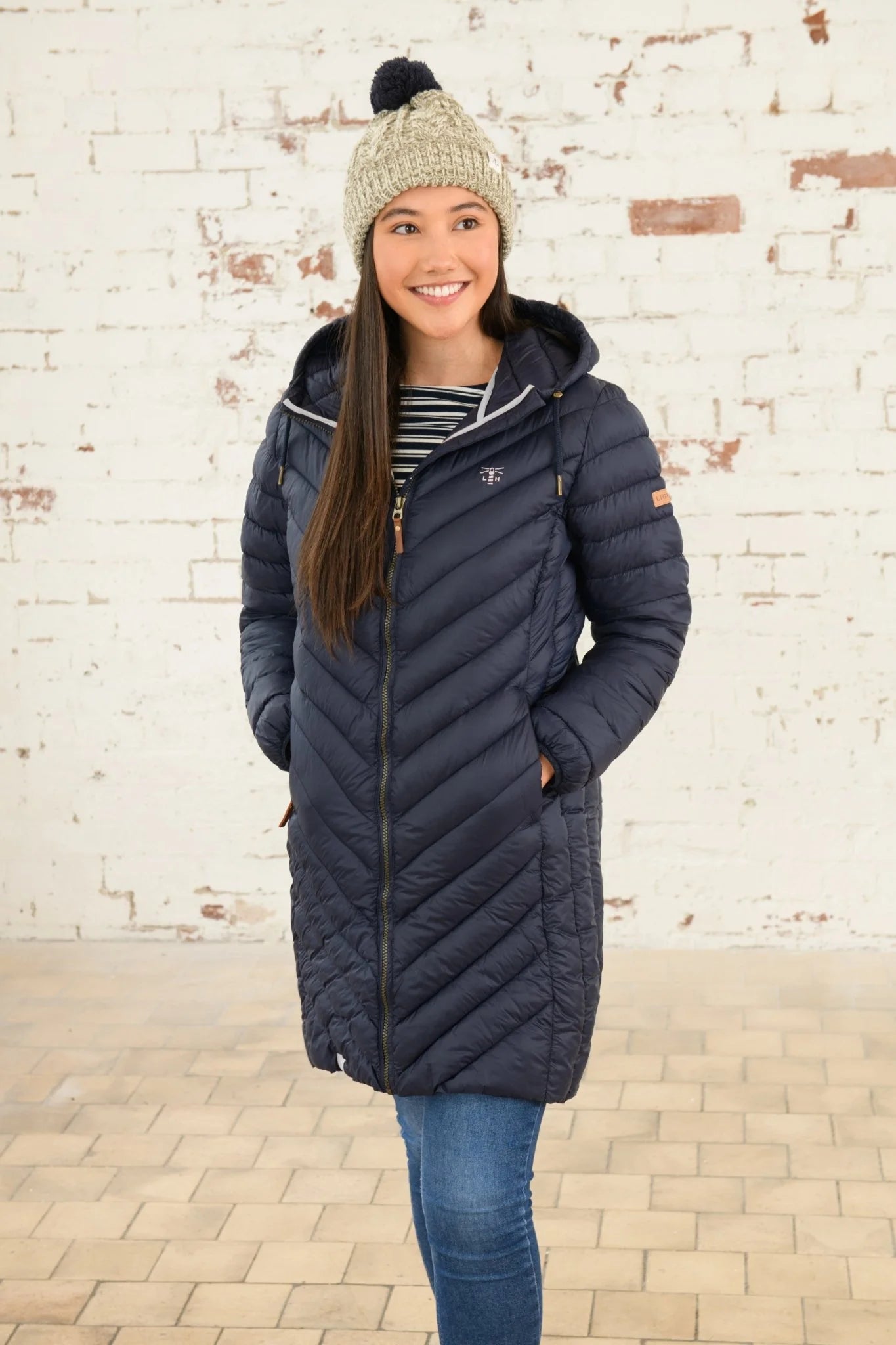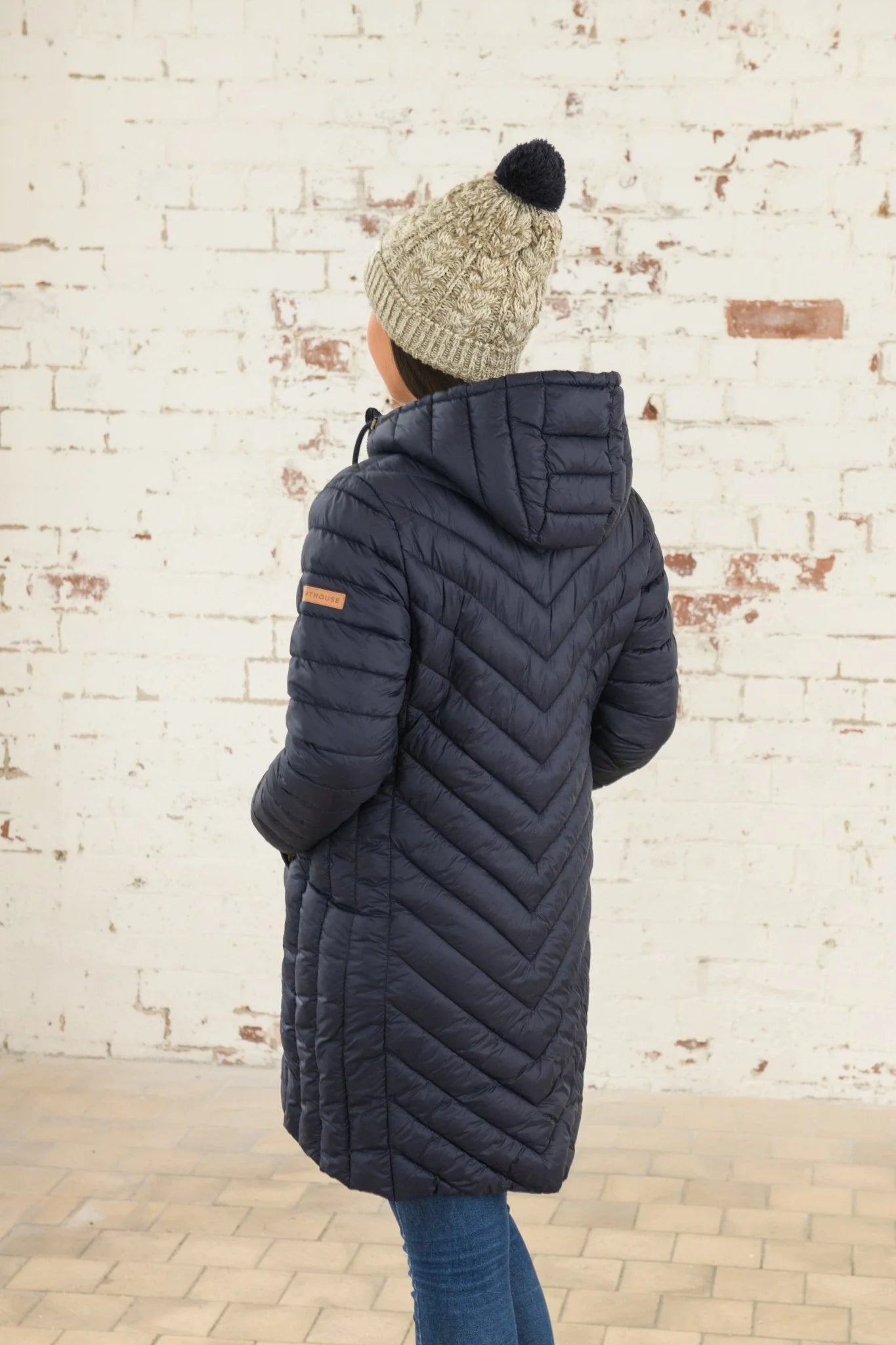 The Laurel coat is laden with recycled fill for a snug feel on chilly days. Boasting a water repellent outer and two zipped front pockets, valuables can be kept safe and secure. Featuring an antique front zip and faux leather puller, the 100% Nylon outer ensures enhanced durability. From coastal-bound adventuring to autumnal picnics, be ready for every outing in this stylish statement piece