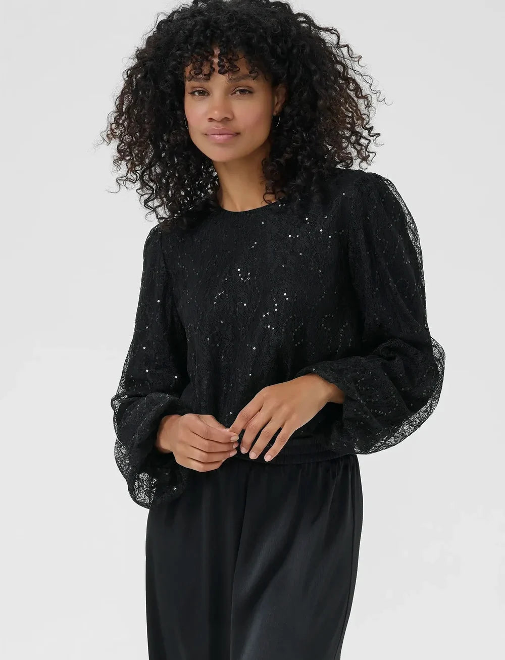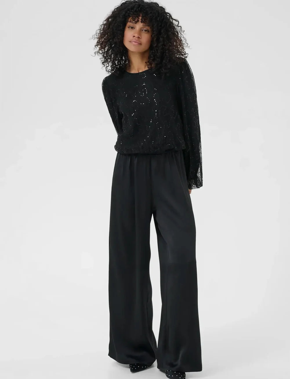 The Otilia Top is a shimmering statement piece perfect for evening wear. It features full sequin embellishment across the front and back, with a subtle sheen that catches the light beautifully.