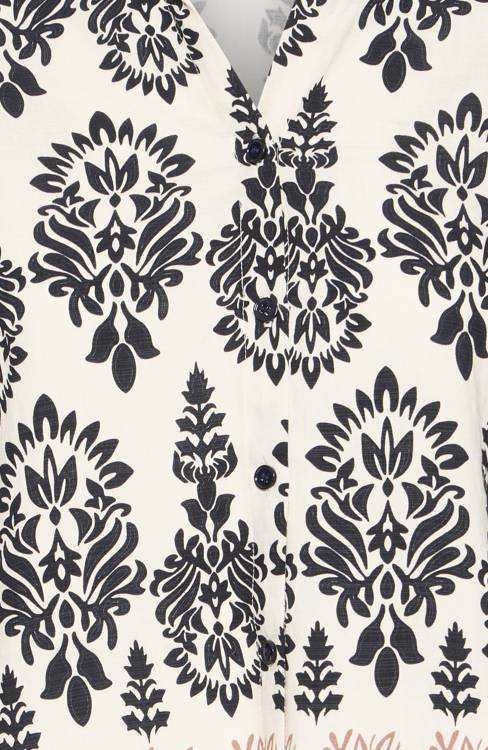 Embrace effortless bohemian style with this cream shirt featuring a delicate black boho-inspired print. Crafted from lightweight, breathable fabric, it drapes beautifully for a relaxed yet refined look. The rich cream base contrasts softly with the intricate black pattern, adding depth and artistic flair without overpowering the design. Perfect for day-to-night wear, this versatile shirt pairs easily with denim, skirts, or layered accessories for a free-spirited, modern boho aesthetic. Comfortable, stylish, and unique, it’s an ideal choice for those who love expressive, laid-back fashion.