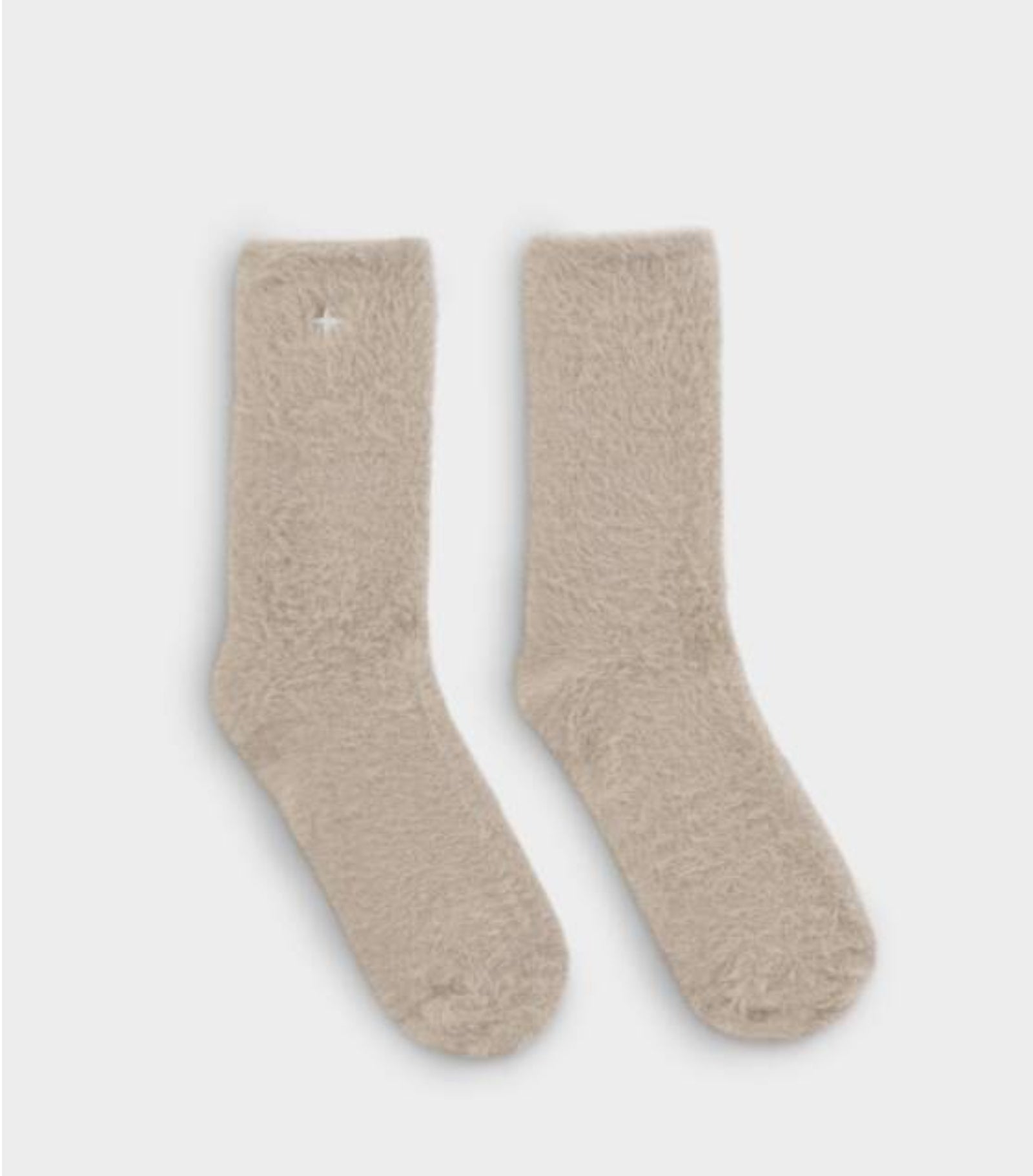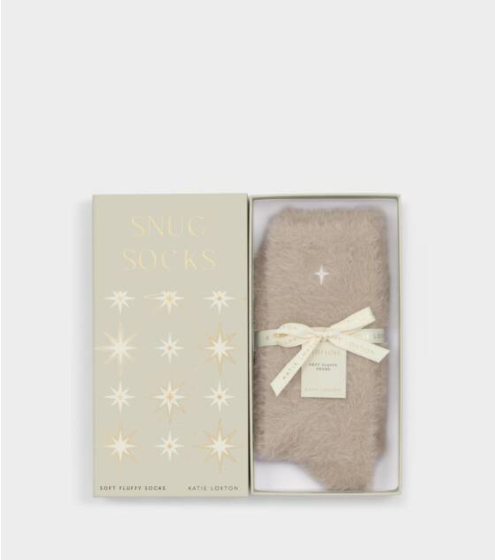 Our Gift Boxed Fluffy Socks in Taupe features a super-soft pair of socks with an embroidered star detail, perfect for keeping feet cosy. All wrapped up in a beautiful gift box with the sentiment 'Snug Socks,' ready to surprise and delight the lucky recipient.