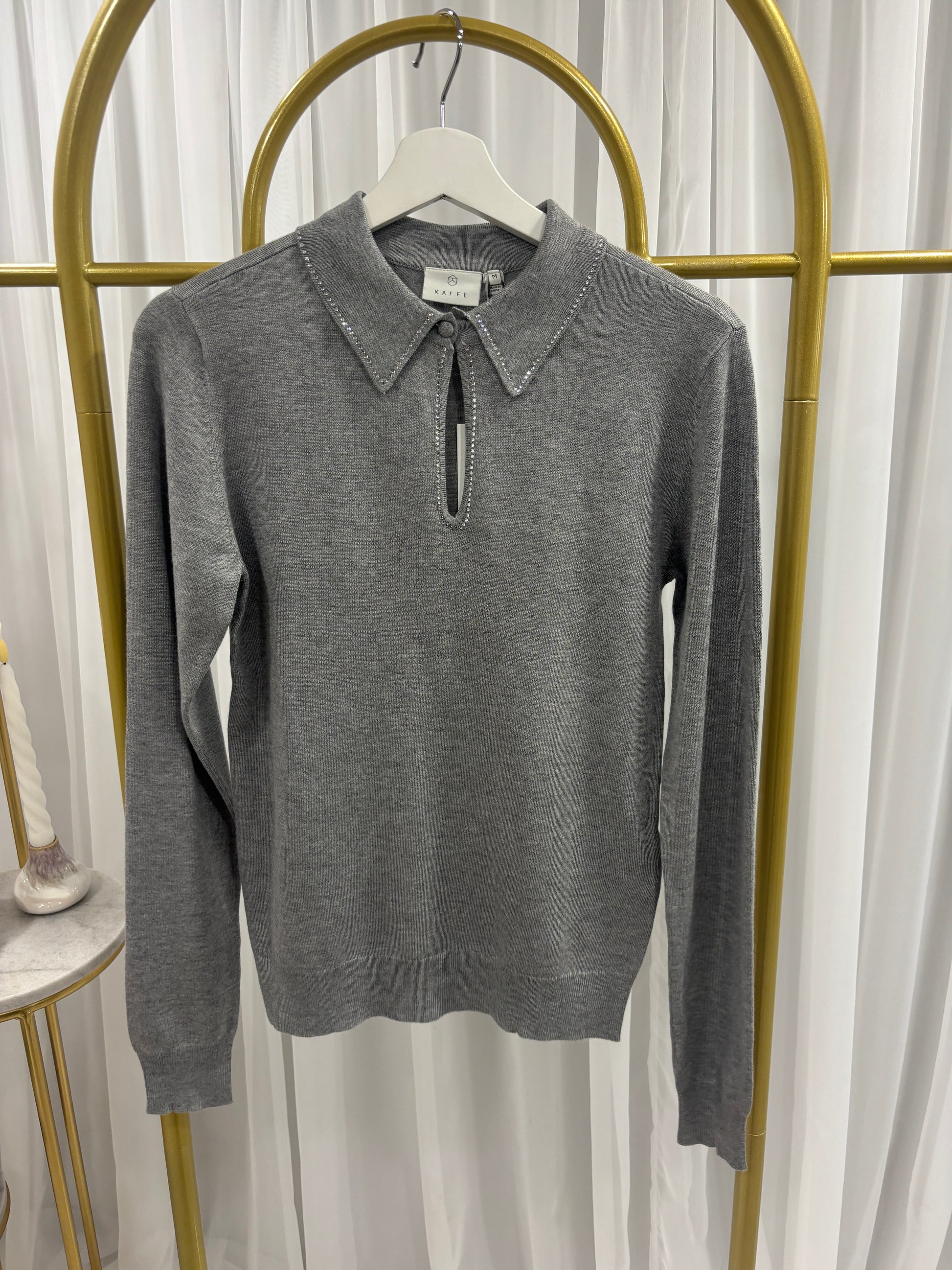 diamonte detail along neckline and collar