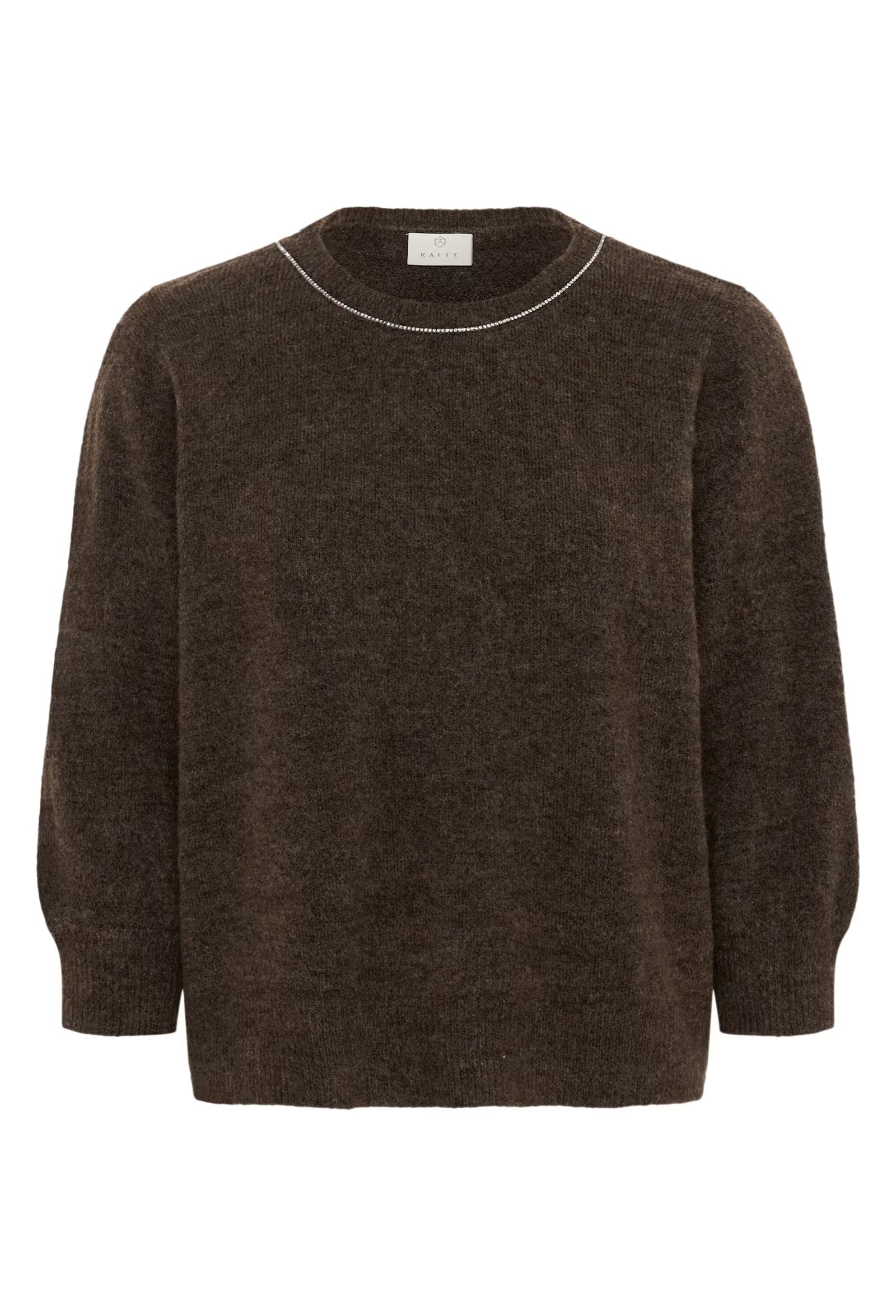 Sweater with a straight silhouette, soft finish, classic crew neckline with subtle embellishment. Features relaxed gathered sleeves and ribbed cuffs for understated style.